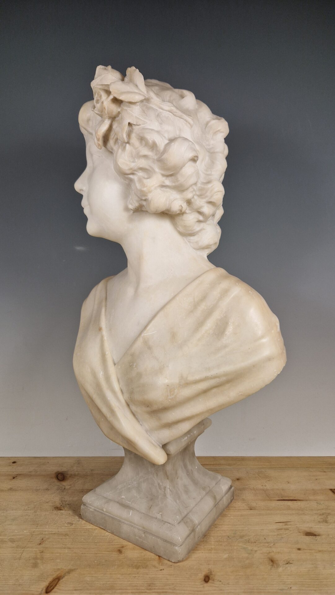 Raffinato busto in marmo raffigurante giovane fanciulla .