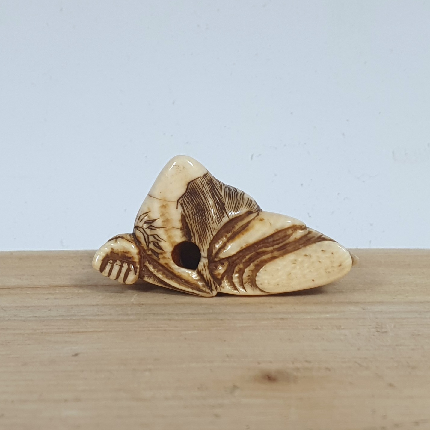 netsuke in avorio raffigurante Fukurukuju seduto, con certificato cites per il commercio dell’avorio
